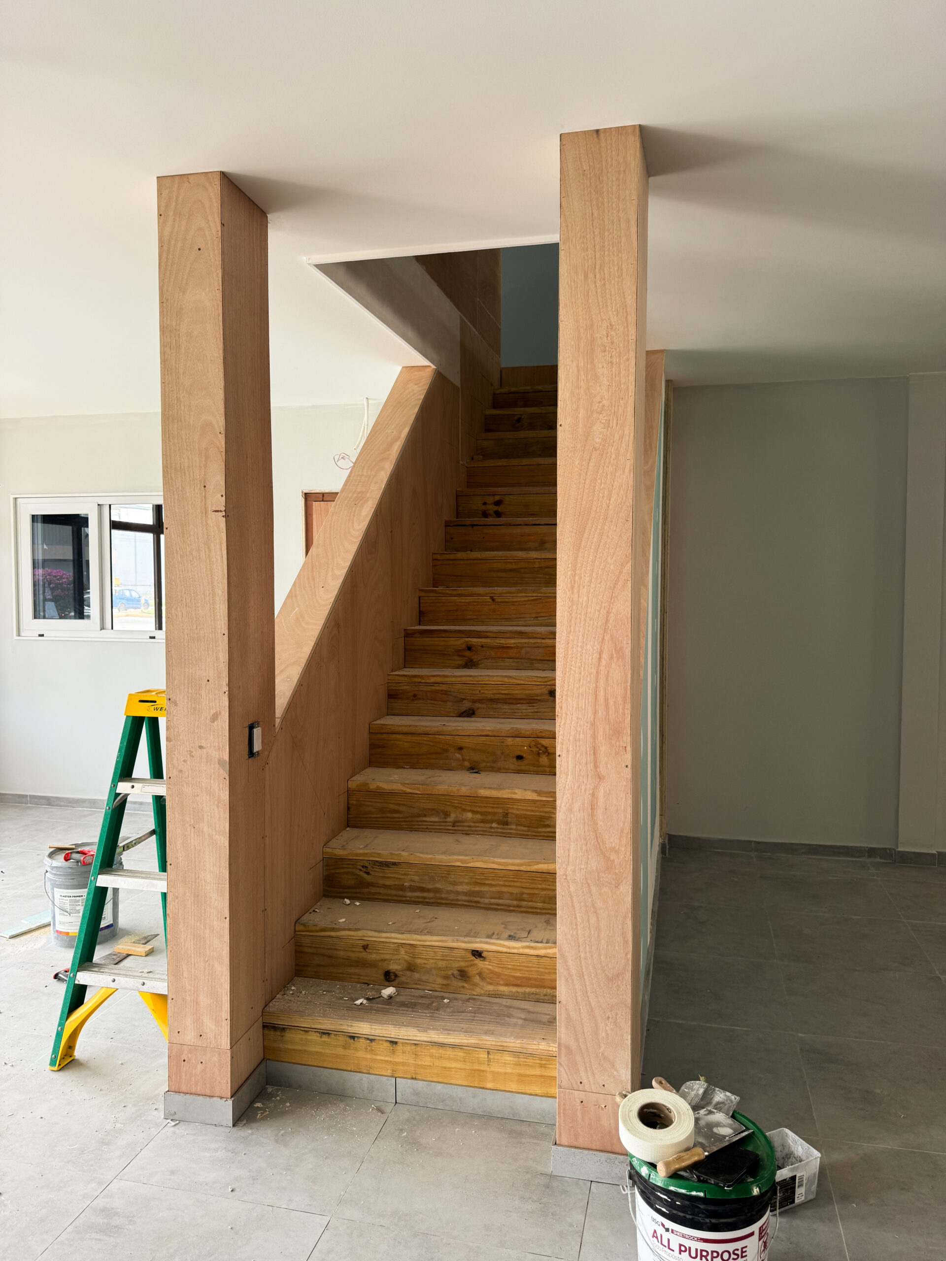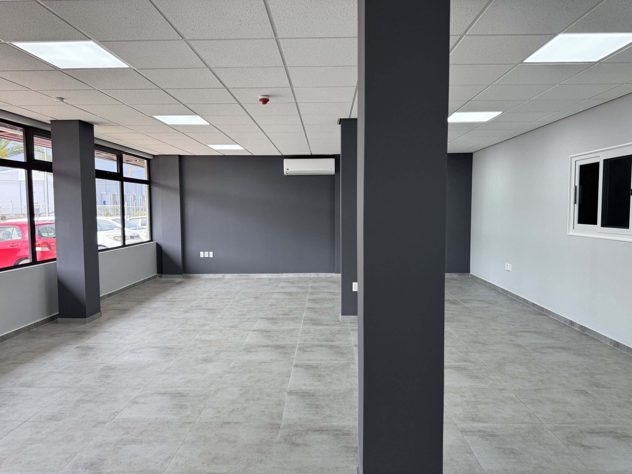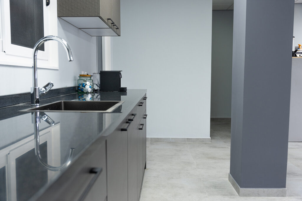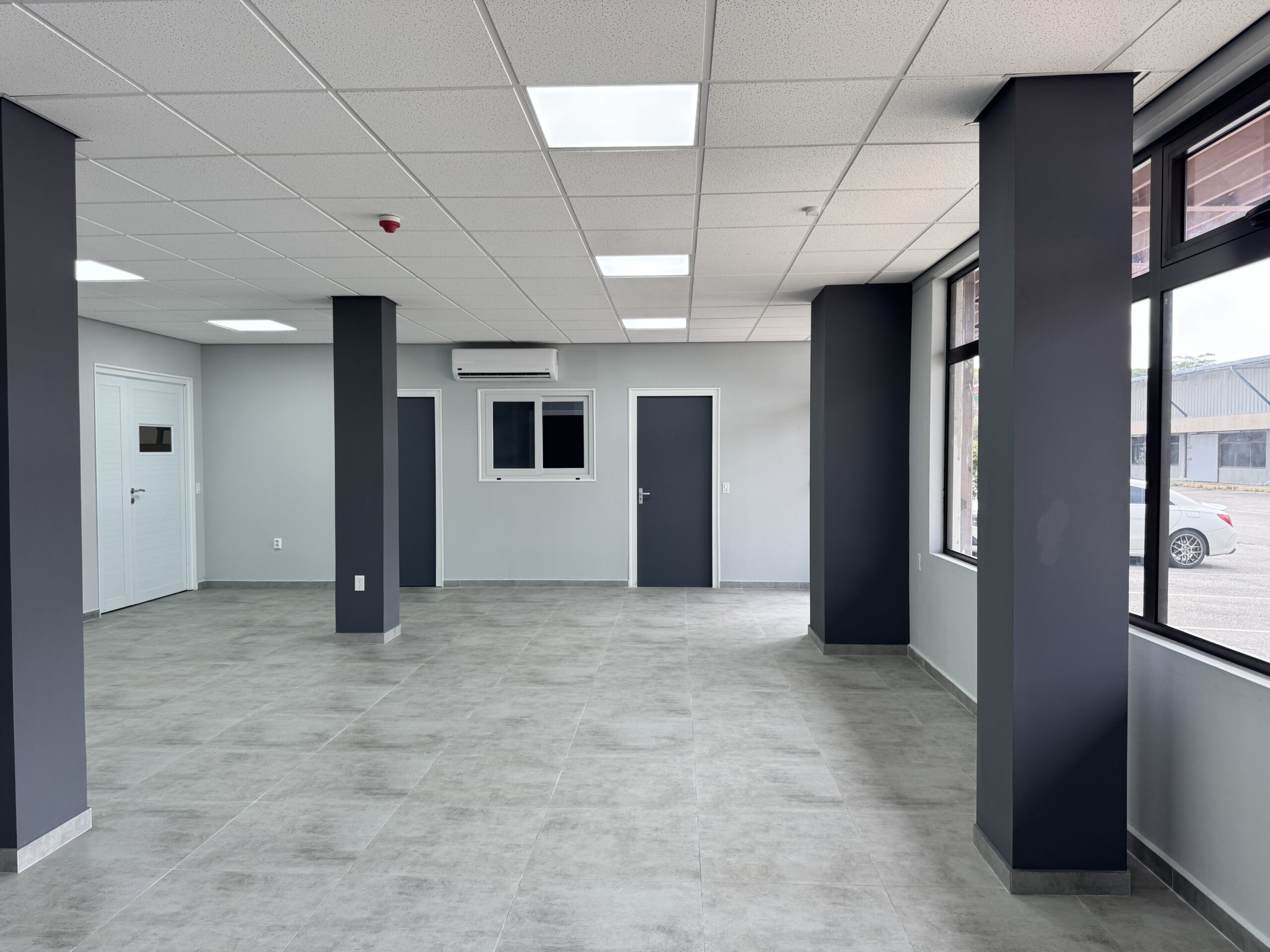 As part of the ground‑floor finishing, 60×60 cm floor tiles were installed. This presented a challenge due to the uneven condition of the existing warehouse floor. Despite this, the installation was successfully completed, resulting in a clean, durable, and professionally finished tiled surface.