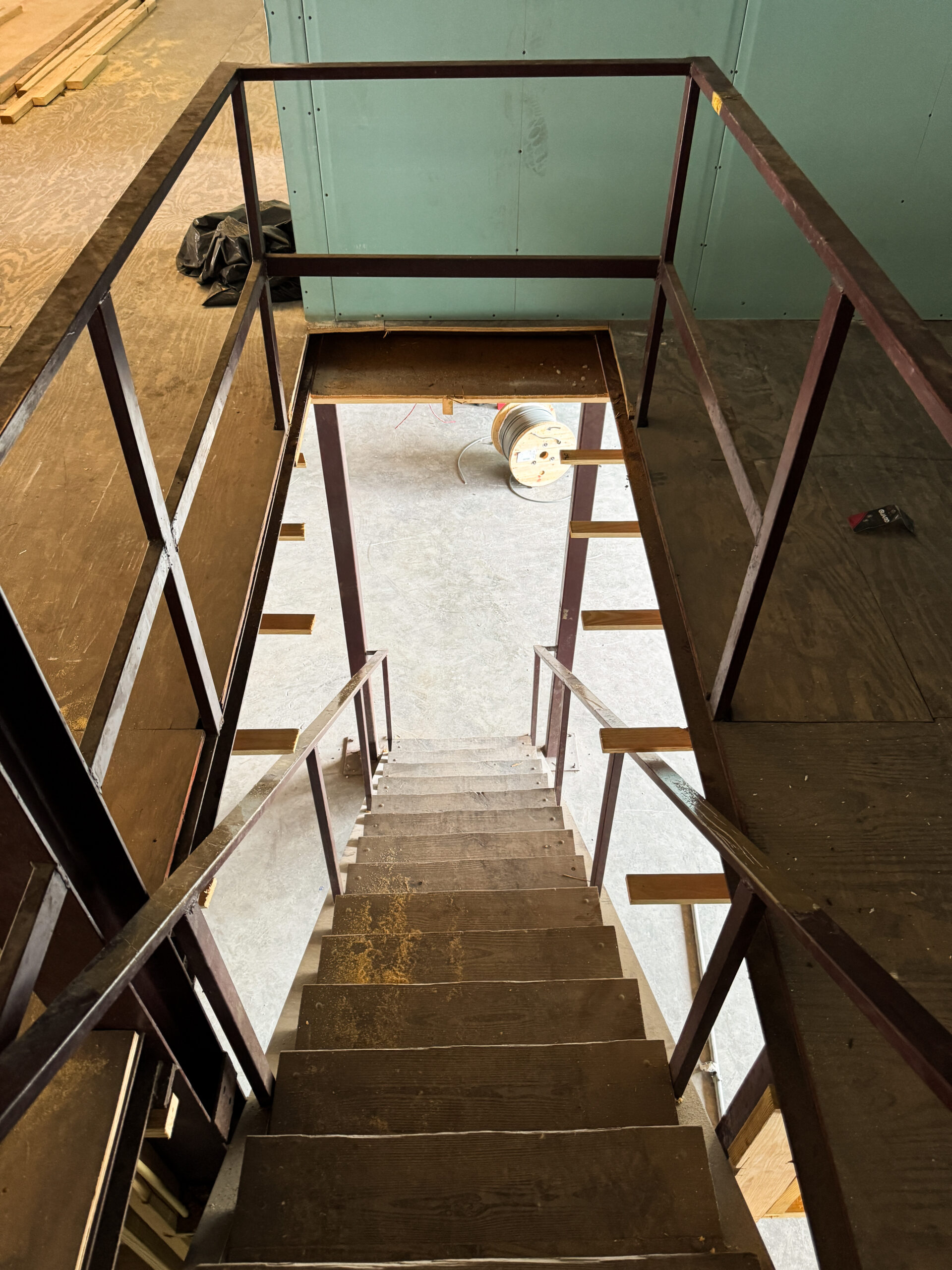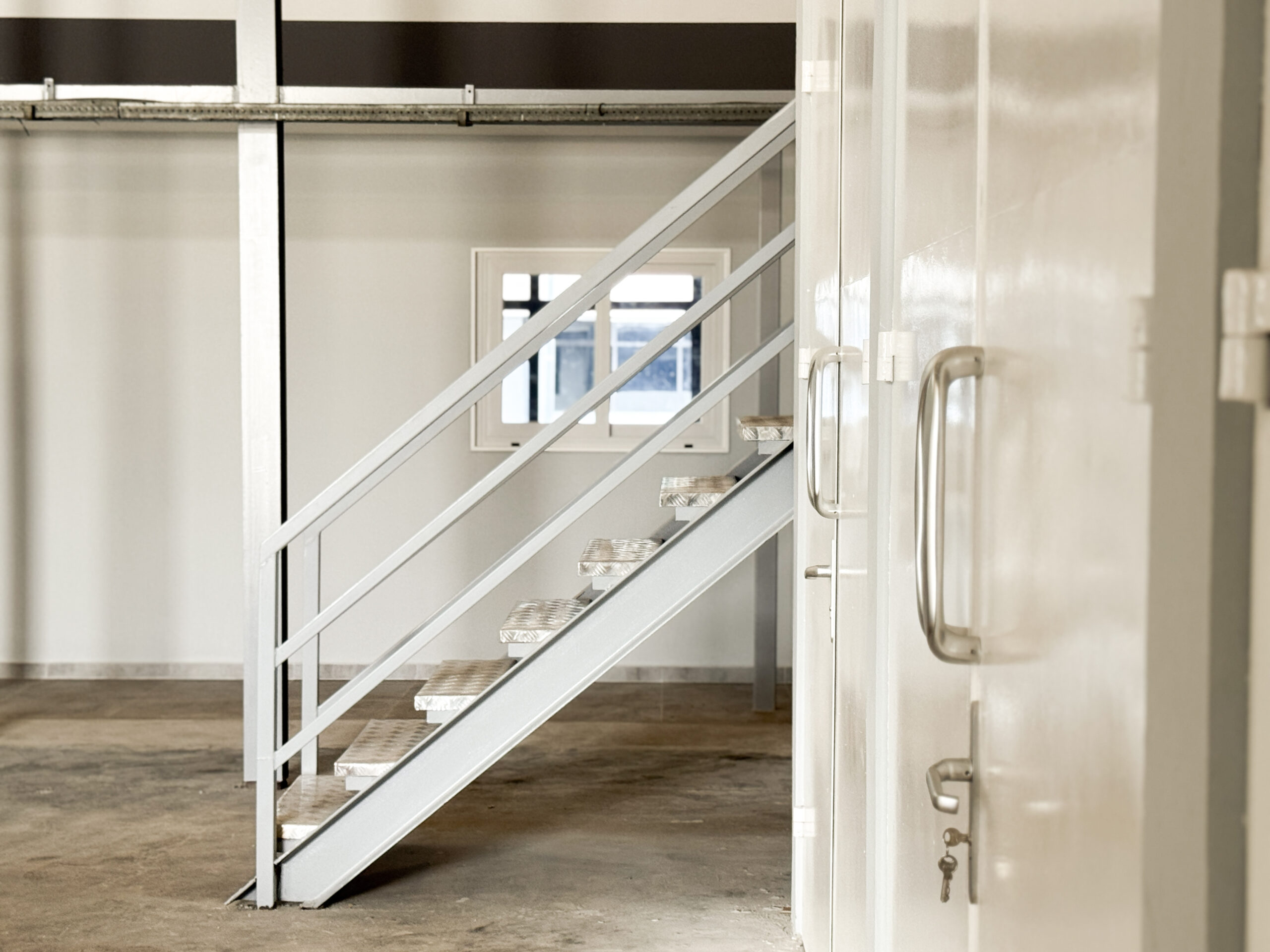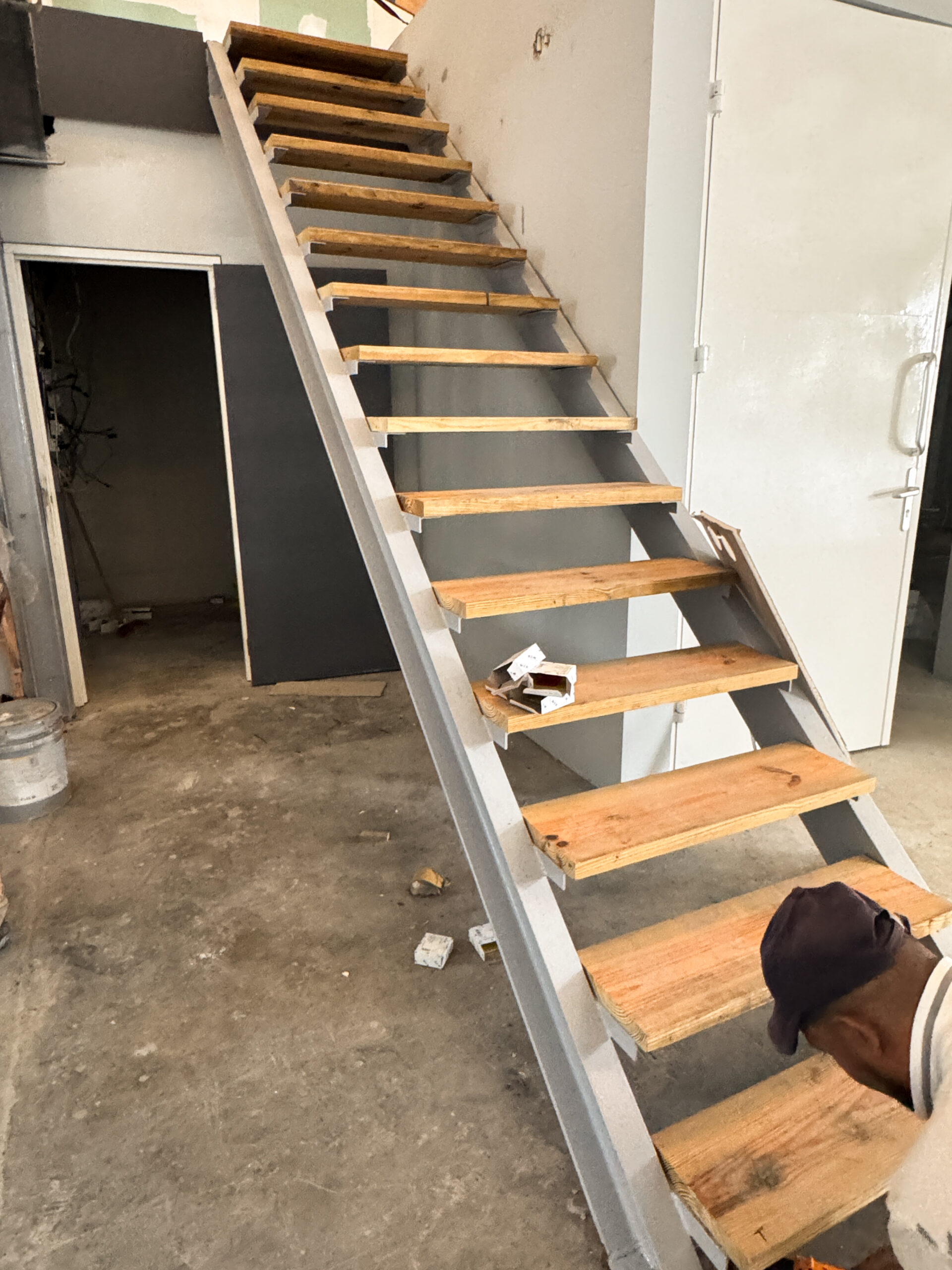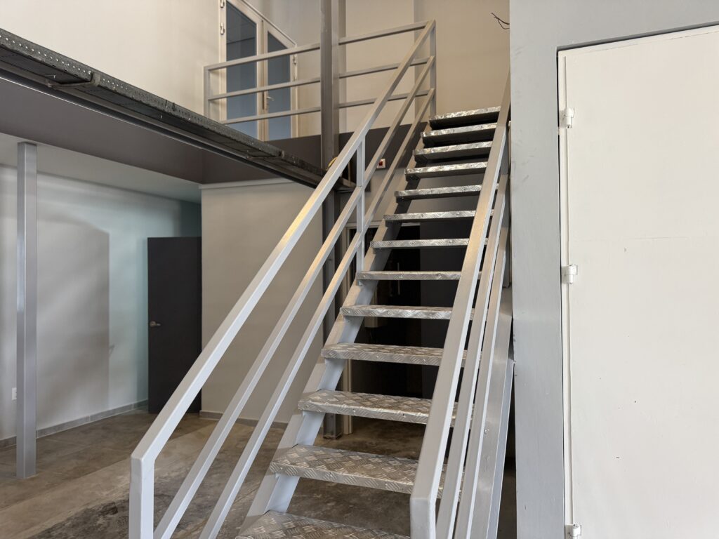 In addition, based on the structural engineer’s calculations and recommendations, an IPE‑270 steel beam was installed between the spaces to provide additional load‑bearing capacity. This reinforcement was necessary to ensure that the upper storage area could safely support heavy wind turbine components.