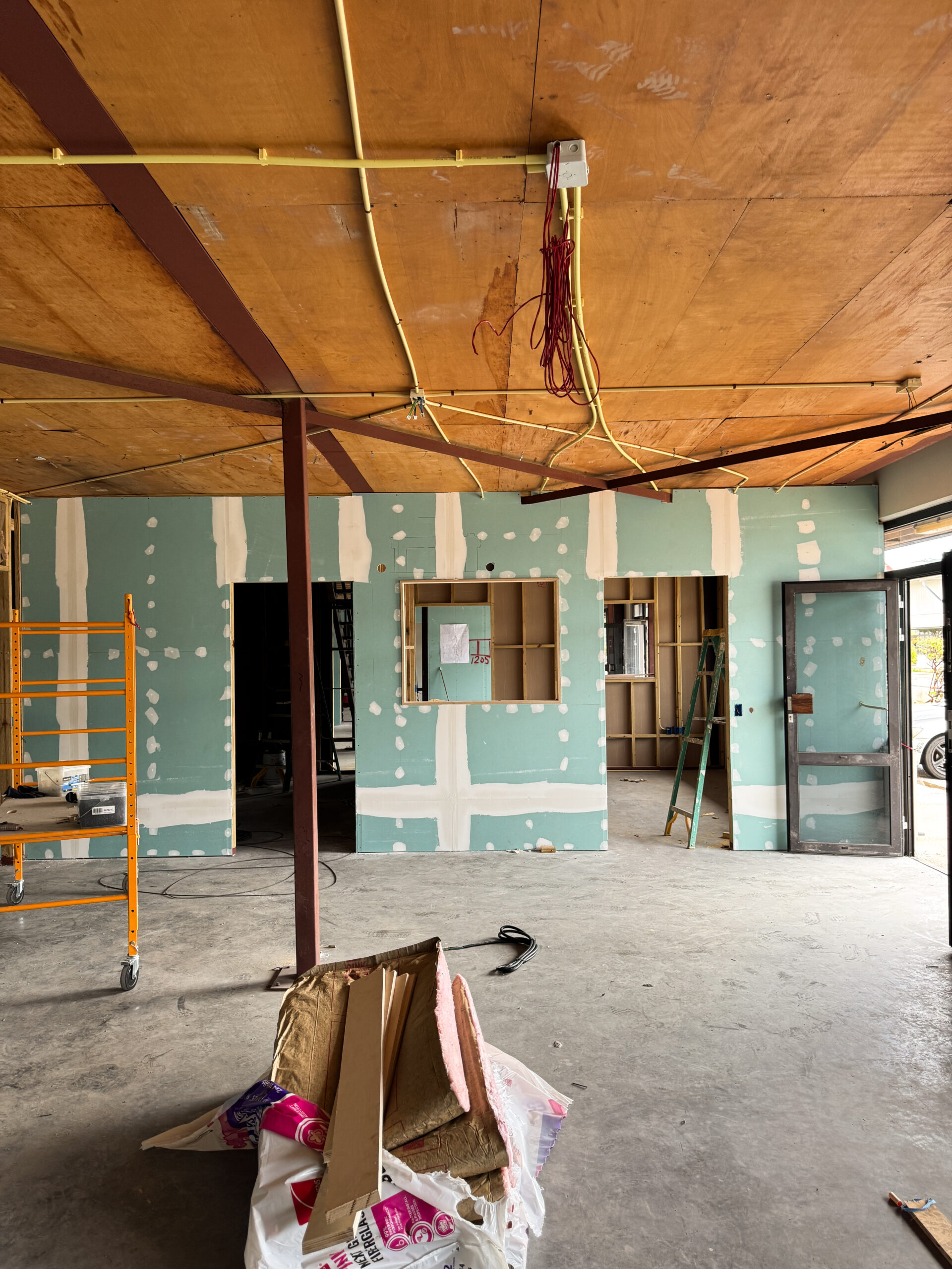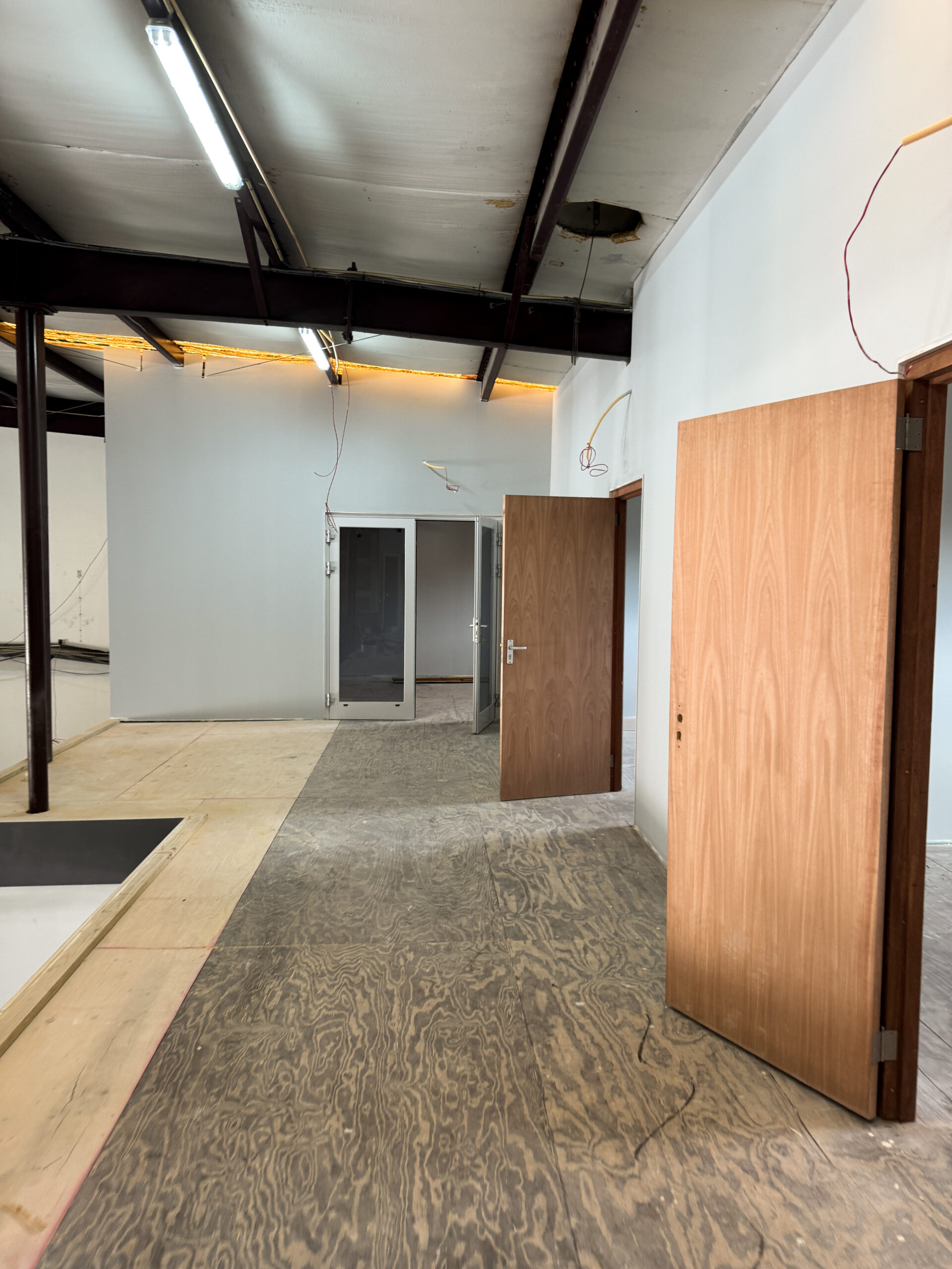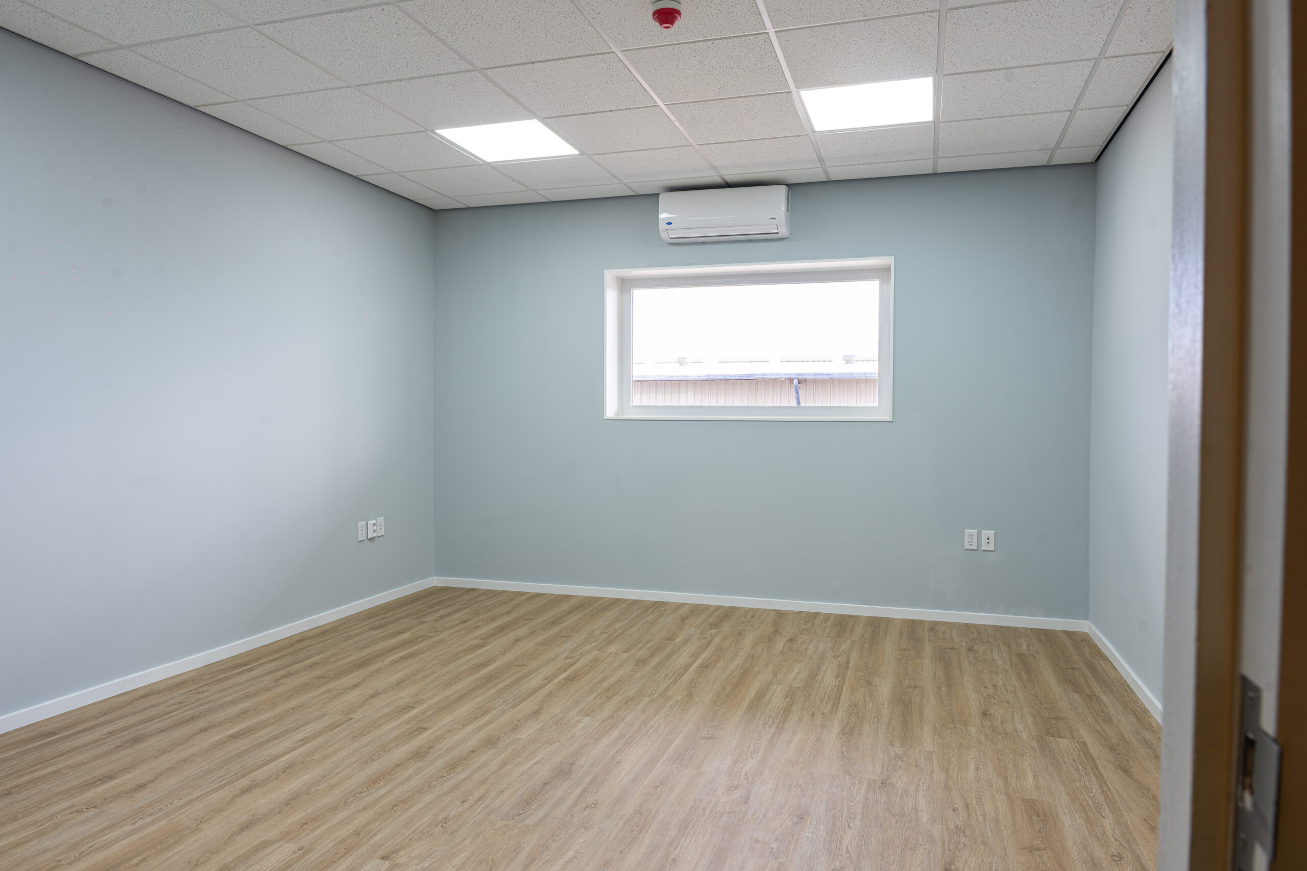 The intention for this construction was to use a partition wall system, allowing the creation of flexible and easily adjustable interior spaces. All office walls were finished with gypsum board and insulated using Owens Corning PINK Next Gen Fiberglass R‑13 Kraft (3‑1/2 in., 23×93 in.). This insulation was essential to prevent sound transmission between rooms and to maintain proper cooling within the office areas. The walls were completed to a high professional standard.