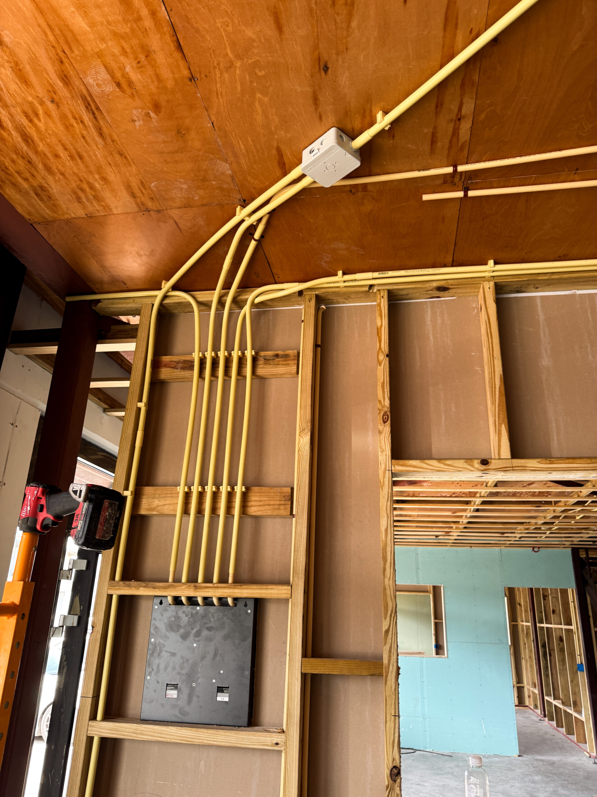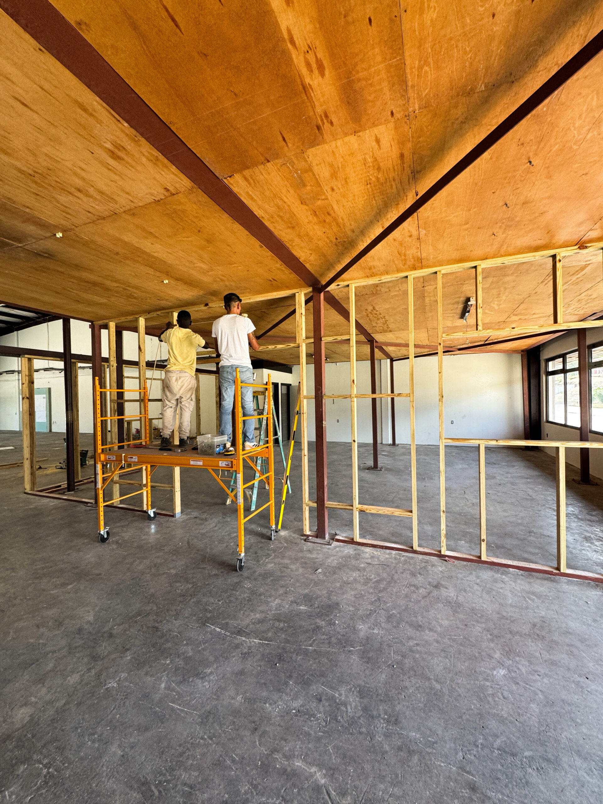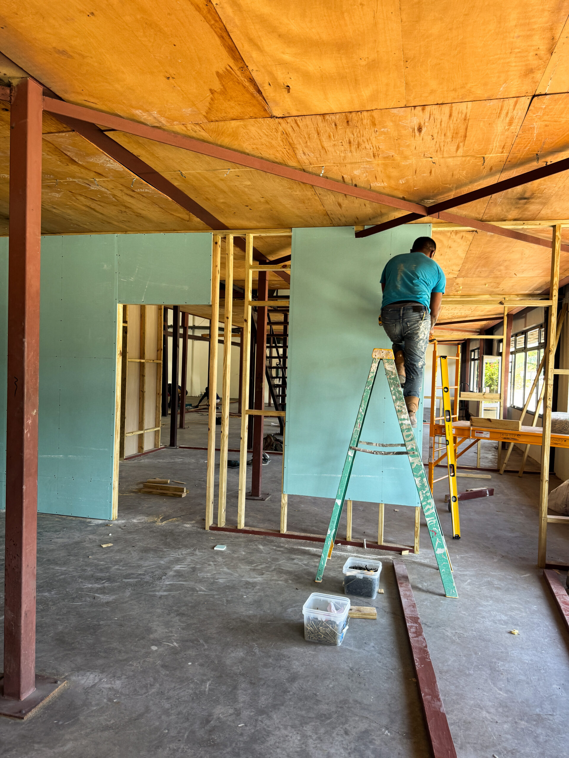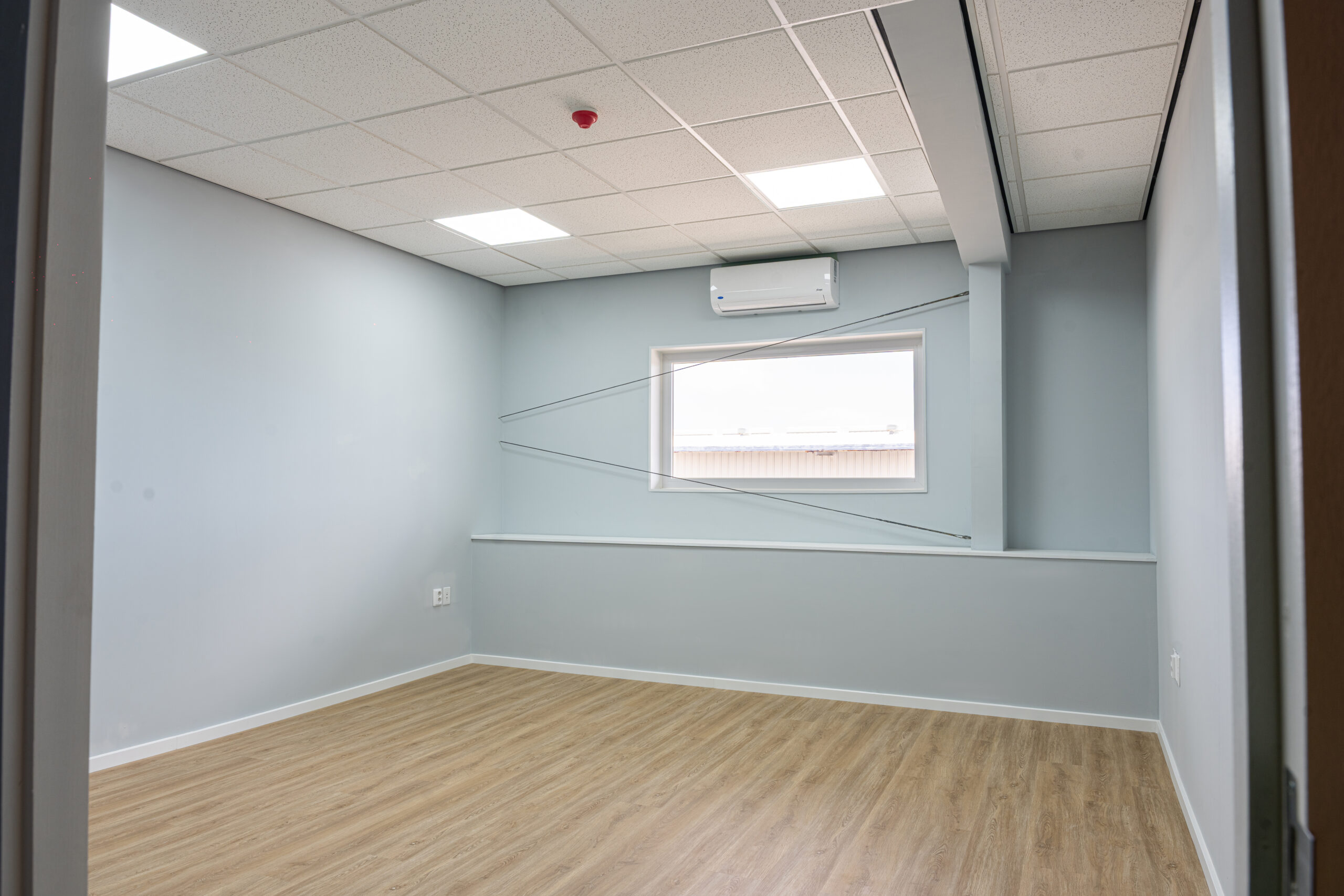 The intention for this construction was to use a partition wall system, allowing the creation of flexible and easily adjustable interior spaces. All office walls were finished with gypsum board and insulated using Owens Corning PINK Next Gen Fiberglass R‑13 Kraft (3‑1/2 in., 23×93 in.). This insulation was essential to prevent sound transmission between rooms and to maintain proper cooling within the office areas. The walls were completed to a high professional standard.