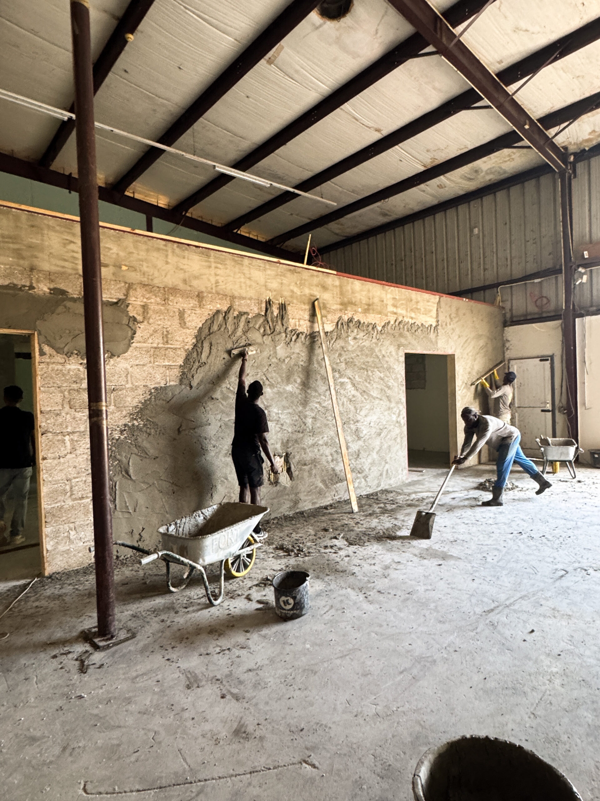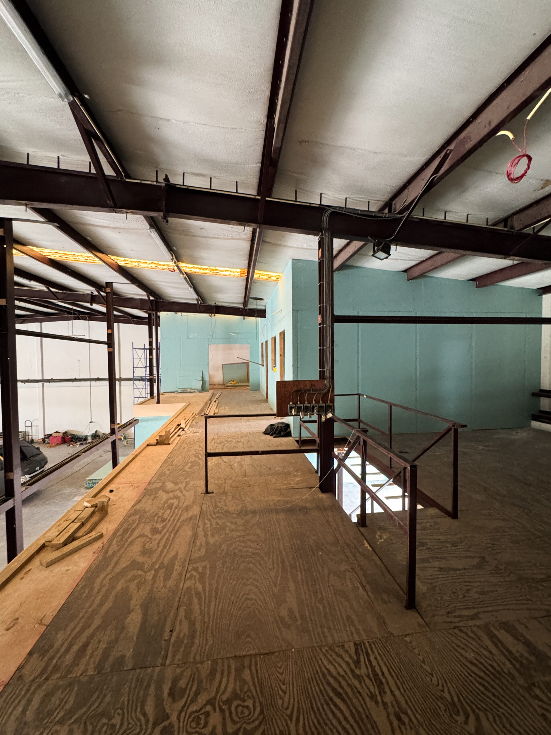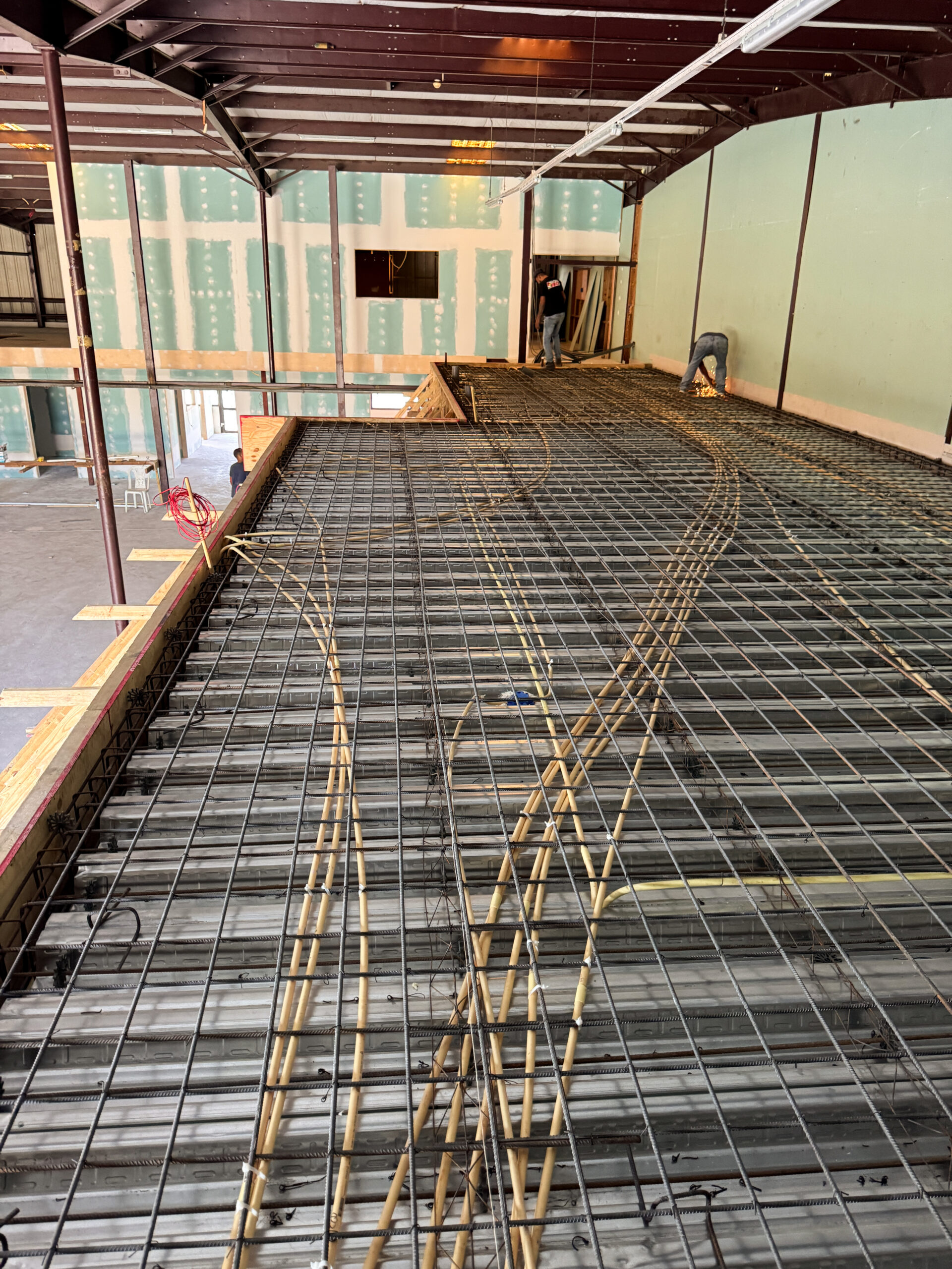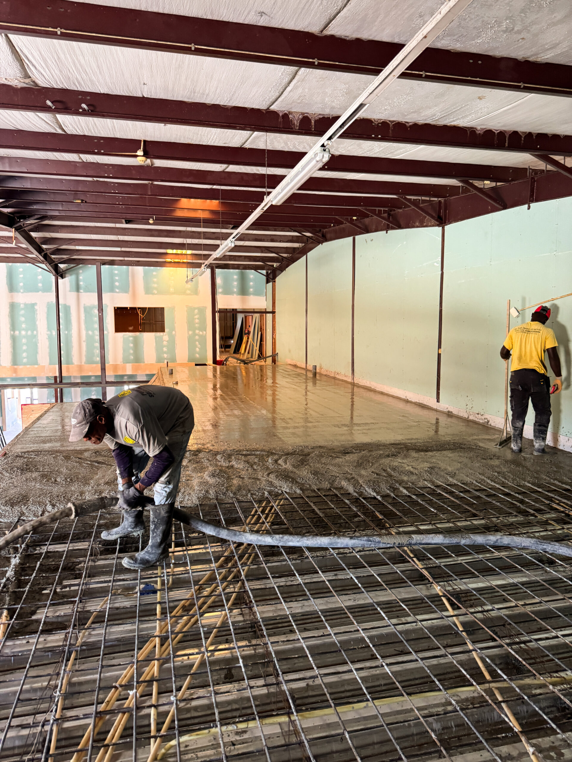 The cooled area (a 24/7 climate‑controlled space) required a different structural approach. This section had to be built using concrete masonry blocks to support a reinforced concrete slab above, which would serve as an additional storage level for the company. For this purpose, 6‑inch concrete blocks were used, combined with cast‑in‑place concrete columns and a Superfloor system installed on top. (See cooled area photos.)