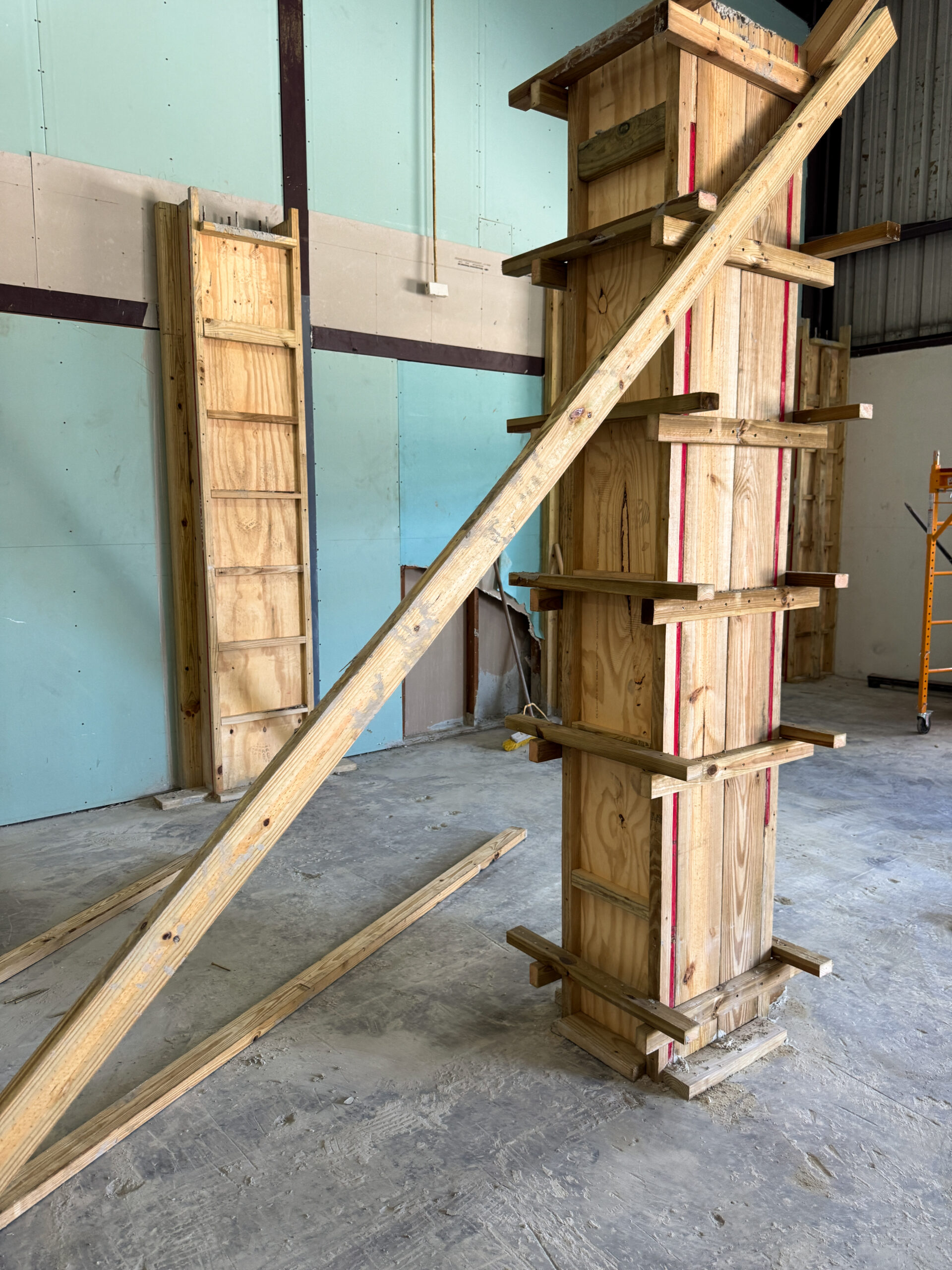 The cooled area (a 24/7 climate‑controlled space) required a different structural approach. This section had to be built using concrete masonry blocks to support a reinforced concrete slab above, which would serve as an additional storage level for the company. For this purpose, 6‑inch concrete blocks were used, combined with cast‑in‑place concrete columns and a Superfloor system installed on top.
